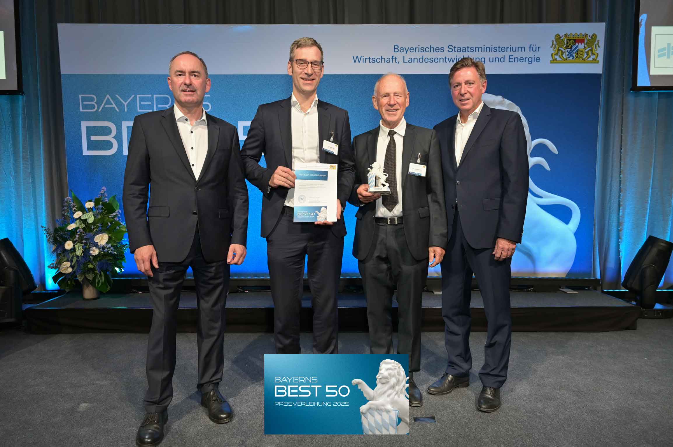 Die Rietzler Gruppe GmbH wurde vom Bayerischen Staatsministerium für Wirtschaft, Landesentwicklung und Energie mit dem Wirtschaftspreis „BAYERNS BEST 50“ ausgezeichnet. Damit zählt unser Unternehmen offiziell zu den wachstumsstärksten mittelständischen Firmen im Freistaat Bayern.
